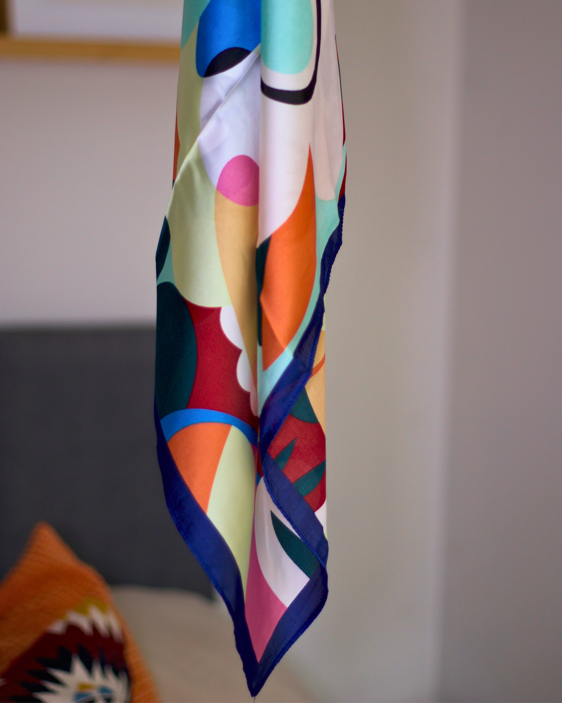 Piñña Square Scarf ~~ Inspired by the cool vibe of keinemusik, this scarf is all about making a statement. It's a 70 x 70 cm splash of fun, crafted from top-notch polyester twill with a playful double-sided print. Whether you're dressing up or just keeping it casual, this colorful scarf adds a perfect pop to any look.